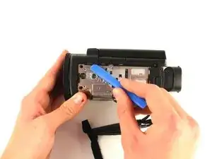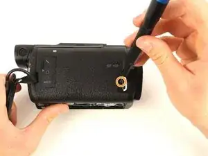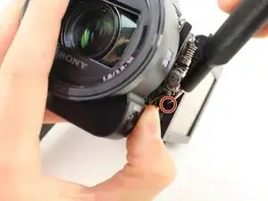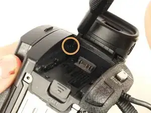 Удалите винт Phillips #00 длиной 3 мм между окуляром и панелью, расположенной непосредственно справа от отсека для аккумулятора.
