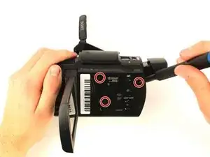 Удалите два винта Phillips #00 длиной 4 мм из верхнего правого угла камеры.