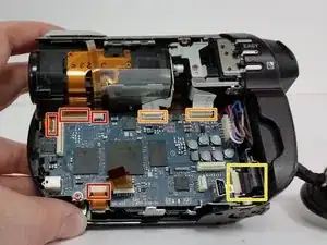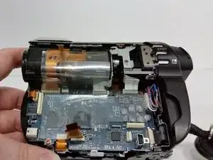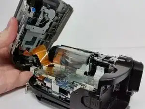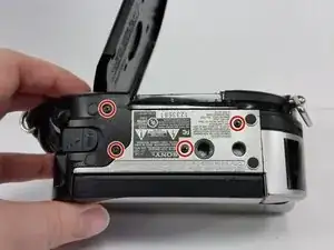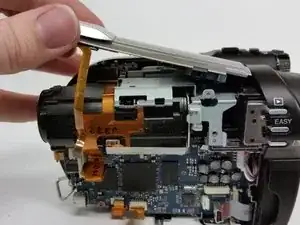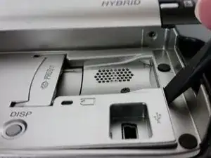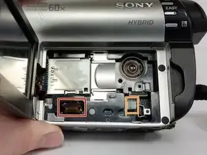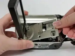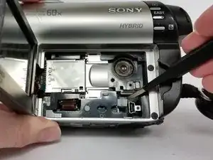 Используйте это руководство, чтобы отремонтировать или заменить дверцу диска на Sony Handycam DCR-DVD650. Защёлка, удерживающая дверцу закрытой, электроприводная и откажется открываться, если питание не подано на устройство. По возможности включите устройство перед началом этих шагов и откройте дверцу диска. Это избавит вас от необходимости взламывать дверцу на последующих шагах и уменьшит риск повреждения дверцы, корпуса и внутренних компонентов, удерживающих дверцу.