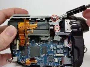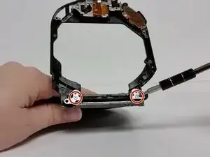Теперь, когда все кабели отключены, удалите два бронзовых винта (2 мм, Phillips #00) на корпусе объектива.