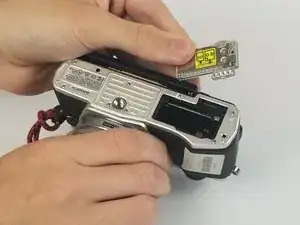 Возьмите дверцу карты памяти и снимите её, потянув от корпуса камеры.