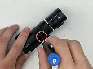Выверните 5 мм винт с боковой стороны устройства рядом с присоской с помощью крестовой отвертки Phillips #00.