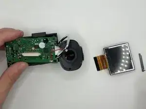 Поднимите внутреннюю часть устройства с камерой. Она должна выскочить из разъёма. Осторожно, чтобы не повредить провода, отведите её в сторону.