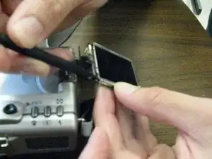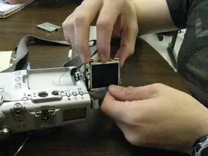 Оттолкните экран вниз и от корпуса камеры.