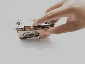 Удалите винты на медной накладке с передней части камеры. Под ней находится соединение с экраном. Поверните это соединение, чтобы извлечь его; для этого может потребоваться достаточная сила.