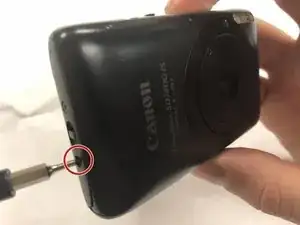 Снимите винт Phillips 4,0 мм, расположенный на нижней части камеры.