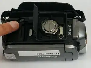 Найдите серый зажим и сдвиньте его в сторону. Батарея пружинная и будет выпрыгивать.