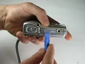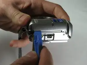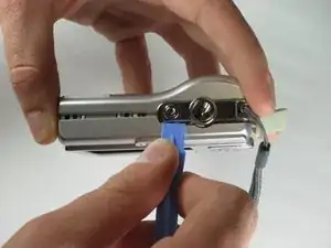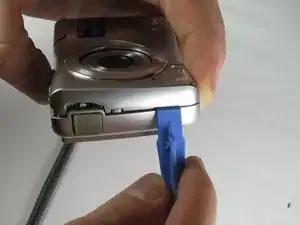 Ослабьте панели по бокам камеры в указанных местах, вставив пластиковый инструмент открытия в зазор между панелями. Легко приложите давление.