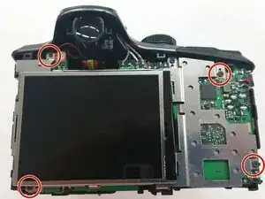 Используйте отвертку Phillips #00, чтобы удалить 4 мм винты с каждой стороны задней крышки камеры.