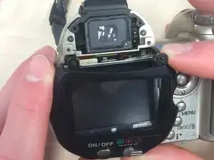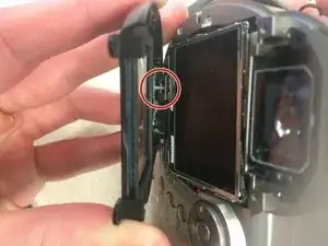 Удалите крышку экрана, приложив небольшое усилие в верхней части, а затем оттяните ее от камеры.