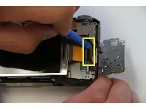 Как только коричневая защелка на разъеме ZIF будет поднята, аккуратно поднимите экран и оторвите его от камеры.