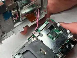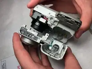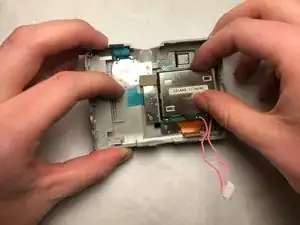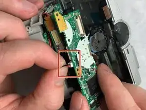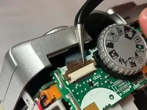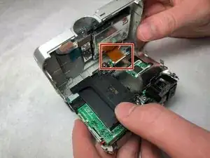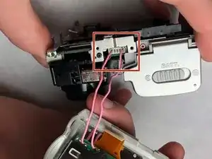 Освободите шлейф, чтобы можно было отделить верхнюю часть задней стороны камеры.