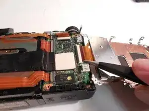 Когда обе половины разделятся, крышка HDMI, крышка зарядного порта и переключатель ВКЛ/ВЫКЛ выпадут.