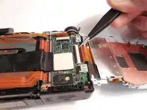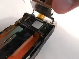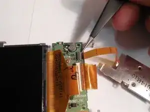 Используйте пинцет, чтобы снять ленточный кабель. Захватите как можно ближе к месту подключения, чтобы не порвать его.