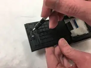 Найдите и удалите два винта длиной 3,5 мм на внутреннем лотке.