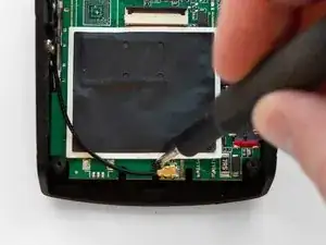 Потяните чёрный антенный провод с золотой заглушкой прямо вверх, чтобы отсоединить его от материнской платы.