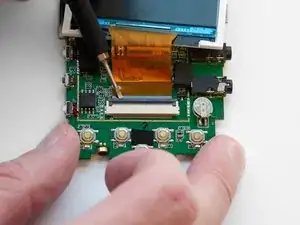 Используя плоскую отвёртку 1.5 мм, отогните чёрный фиксатор ZIF, чтобы освободить ленточный кабель.