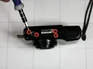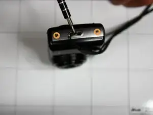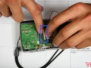 Сожмите область, указанную синим квадратом, и вытяните внешнюю оболочку от оставшейся части камеры.