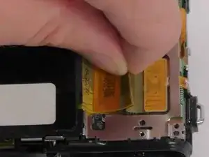 Кабель дисплея стоит вертикально и легко вытаскивается. Потяните его вверх, чтобы снять экран с камеры.
