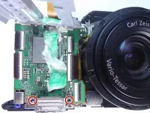 Снимите оба винта, крепящие крышку вспышки к корпусу камеры.