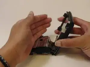 Теперь снимите ЖК-экран, сдвинув заднюю крышку влево, чтобы экран выпал в вашу руку.