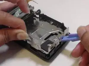 Используйте пластиковой инструмент для вскрытия, чтобы отделить металлическую рамку от задней крышки камеры.