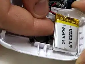 Аккумулятор удерживается к передней части корпуса с помощью двустороннего скотча. Поднимите его пальцем, осторожно, чтобы не повредить аккумулятор.