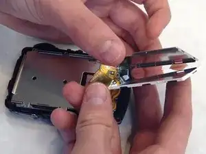 Отсоедините экран ЖК-дисплея от материнской платы, отключив оранжевый шлейф.