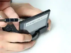 Используйте крестовую отвёртку PH000, чтобы выкрутить два чёрных винта Phillips 0,3 мм, расположенных по бокам экрана ЖК. Поместите винты на магнитный коврик или в пластиковый пакет.