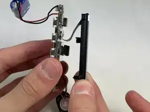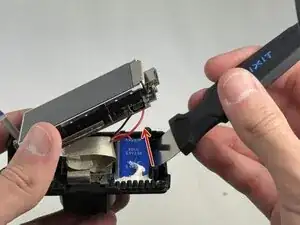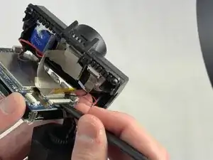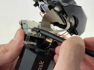Осторожно отведите серебристую защёлку, удерживающую лентовый кабель, соединяющий фотодиод с платой.