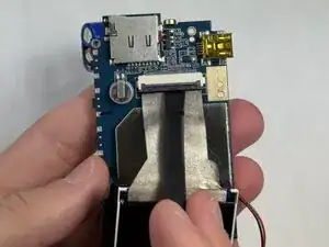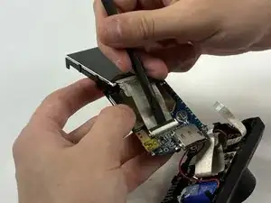 Поднимите защёлку ZIF, которая фиксирует лентовый кабель, соединяющий плату и корпус.