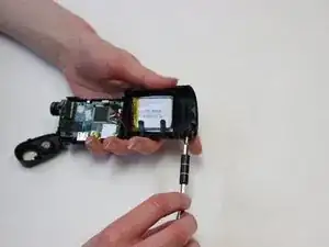 С помощью металлической отвёртки выкрутите винт с задней части устройства.