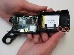 Используйте пластиковый инструмент для вскрытия, чтобы поддеть пластиковую панель сверху камеры.