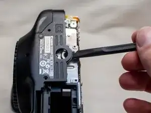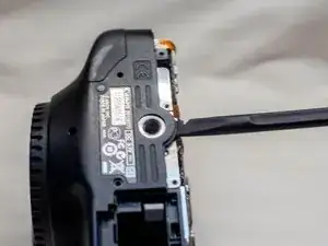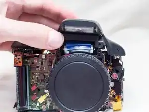 Кабель выскользнет из разъёма при снятии верхней крышки. При установке верхней крышки вам нужно будет снова вставить этот кабель в разъём с помощью пинцета. Этот кабель имеет важное значение для работы вспышки камеры.