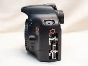 С помощью пластиковой лопатки или другого тонкого пластикового монтажного инструмента снимите крышку интерфейсного разъёма с камеры.
