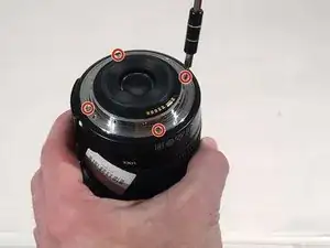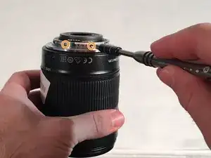 Удалите четыре винта JIS #000 длиной 5.5 мм для кольца крепления объектива (серебряное кольцо).