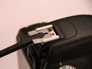 Чтобы собрать устройство обратно, следуйте этим инструкциям в обратном порядке. При затягивании винтов, удерживающих горячий башмак на месте, будьте очень осторожны, чтобы не поцарапать направляющую горячего башмака. Если на направляющей горячего башмака есть царапины или вмятины, установить внешнюю вспышку может быть сложнее.