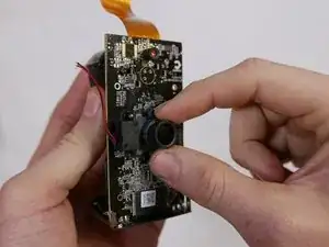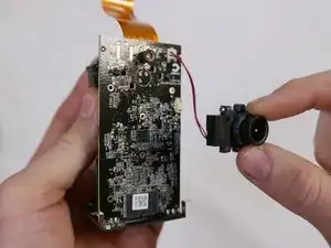 Сомкните большой и указательный пальцы вокруг верхней и нижней частей узла объектива и потяните его от материнской платы.