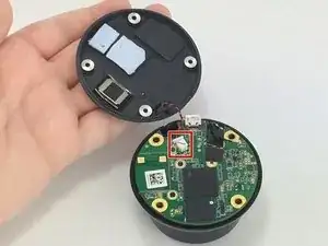 Полностью откройте заднюю панель, чтобы получить доступ к внутренностям камеры Nest.