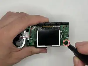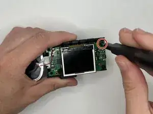 Выверните винт 5 мм на боковой стороне устройства рядом с присоской крестовой отвёрткой Phillips #00.