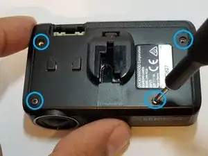 Удалите два винта 4 мм Phillips #0 с камеры.