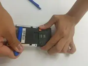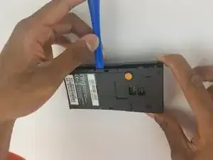 Подденьте задний корпус, как показано, с помощью пластикового инструмента для открывания.