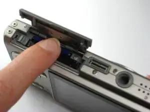 Нажмите вниз на карту памяти (расположена позади батареи) и полностью отпустите давление.