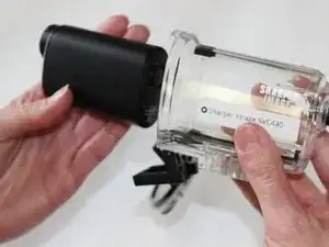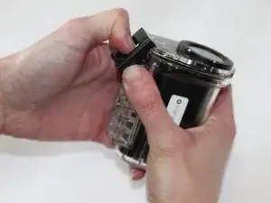 Как только зажим освободится, просто потяните переднюю часть водонепроницаемого корпуса и выдвиньте камеру.