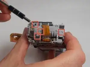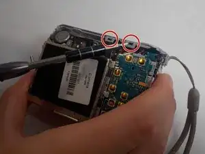 Выверните два винта Phillips #00 длиной 2 мм (по одному с каждой стороны камеры).
