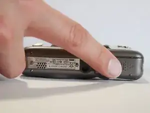 Выключите камеру, плотно нажав кнопку питания, расположенную на верхней части камеры.