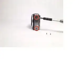 Начните с удаления винтов, расположенных на левых и правых боковых панелях камеры (по две пары винтов). Затем удалите пару винтов на нижней части камеры. (всего 6)