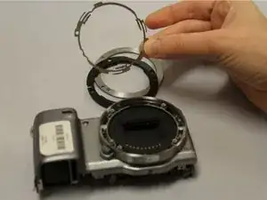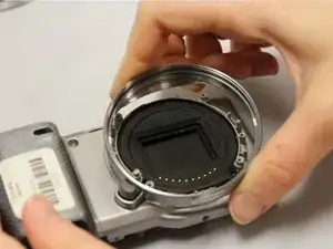 С помощью пальцев аккуратно снимите корпус объектива. Это завершит снятие E-байонета.