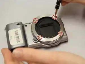 Открутите 4 серебряные винта Phillips #000 размером 1,2 мм по периметру внешнего байонета объектива.