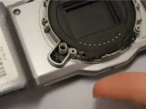 Кнопка освобождения объектива и маленькая пружина под ней будут свободны.